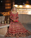 A carefully chosen shade of deep berry red is adorned with stunning gold handwork. The silhouette of the outfit with high slits makes it the ultimate flattering silhouette. The net shirt is embellished with intricate zardozi, dabka, sequins gold and silver zari, naqshi, gota and mukesh. It has a heavy...